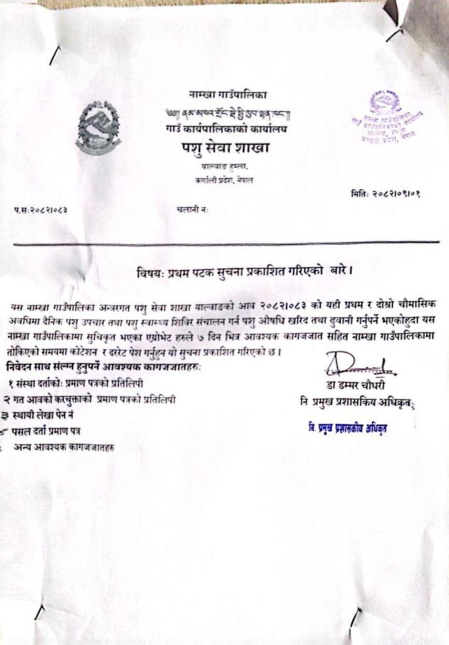 करारमा कर्मचारी पदपूर्ति गर्ने सम्बन्धि सूचना।