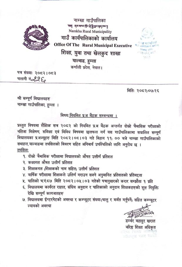 नियमित प्र.अ बैठक सम्बन्धमा।