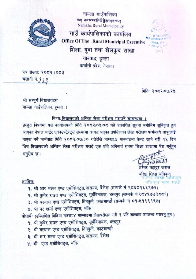 » बिद्यालयको अन्तिम लेखा परिक्षण गराउँने सम्बन्धमा।