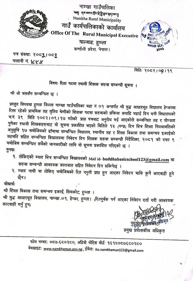 रिक्त पदमा स्थायी शिक्षक सरुवा सम्बन्धि सूचना।