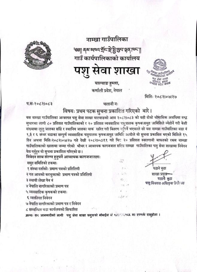 सार्वजनिक खरिद/बोलपत्र सूचना